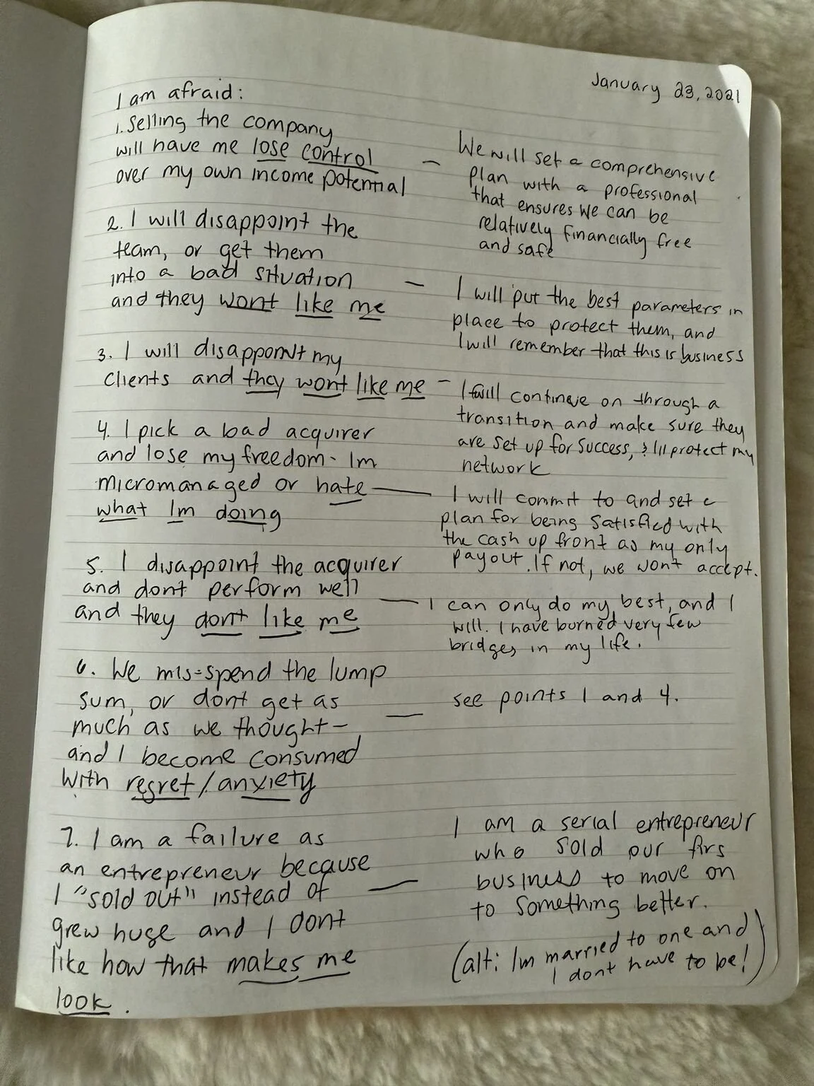 Tucked away in a pile of papers, under years of memories, was something I hadn’t seen since the sale of my last company — a notebook I kept in the earliest days of the exit process. Before there was an offer. Before there were terms. Before it was even real.